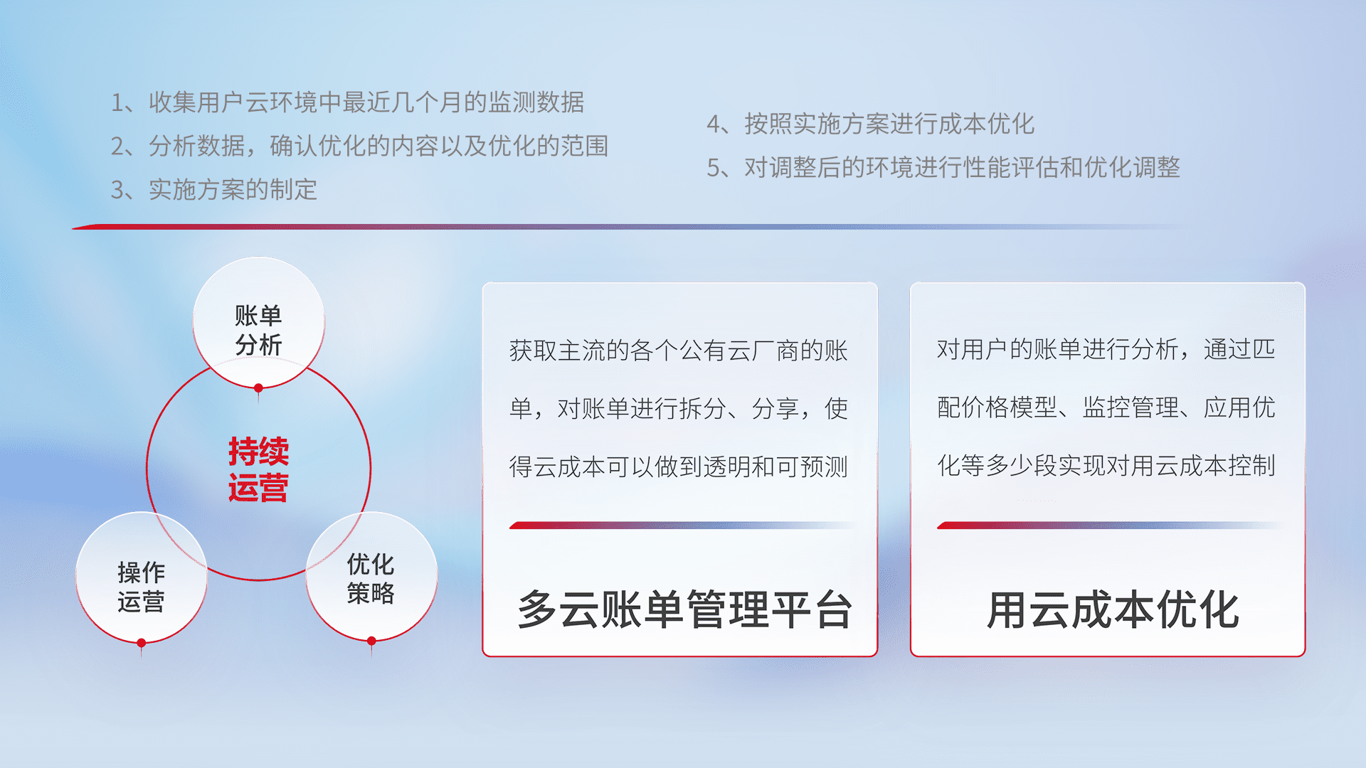 运用智能化工具分析云资源,,,提供日常费用可视化工具,,,自动账单拆分,,,,成本优化云上费用,,,,降本增效。。。